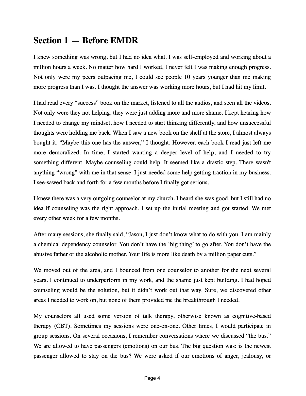 EMDR Can Save Your Bacon is Jason Owens’s true story of how one surprising therapy changed everything. It’s written for anyone who’s ever needed a reset or a reminder that change is still possible.